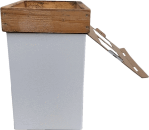 Ouverture décortiquable par l'utilisateur pour enfermer ou libérer les abeilles.